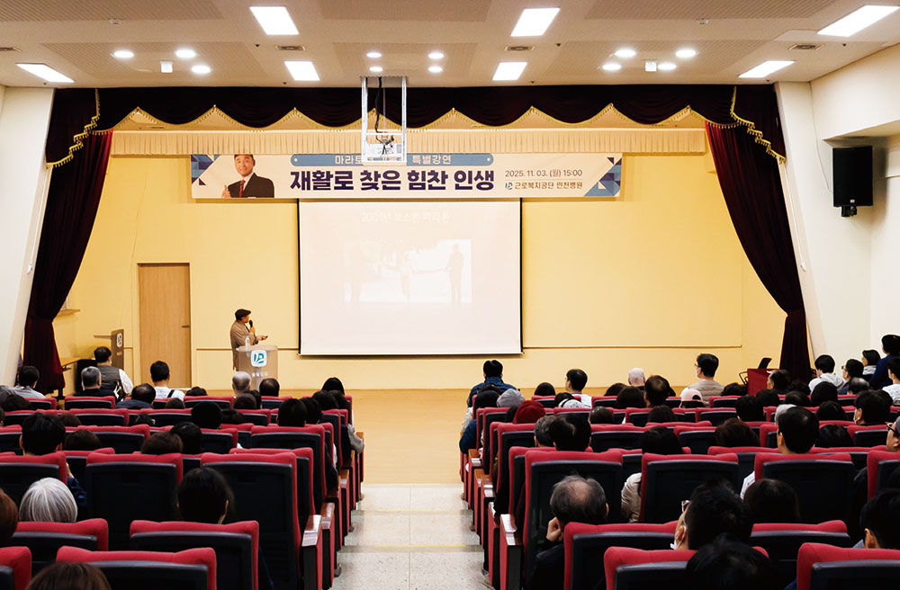 지난 11월 3일, 근로복지공단 인천병원 강당에서 특별한 문화 강연이 열렸다. 강연의 주인공은 대한민국 마라톤의 상징, 전 국가대표 마라토너 이봉주 선수였다. 최근 희귀병 투병을 이겨내고 재활을 통해 다시 삶의 희망을 찾은 그는 이날 ‘재활로 찾은 힘찬 인생’을 주제로 인생 이야기를 들려줬다.