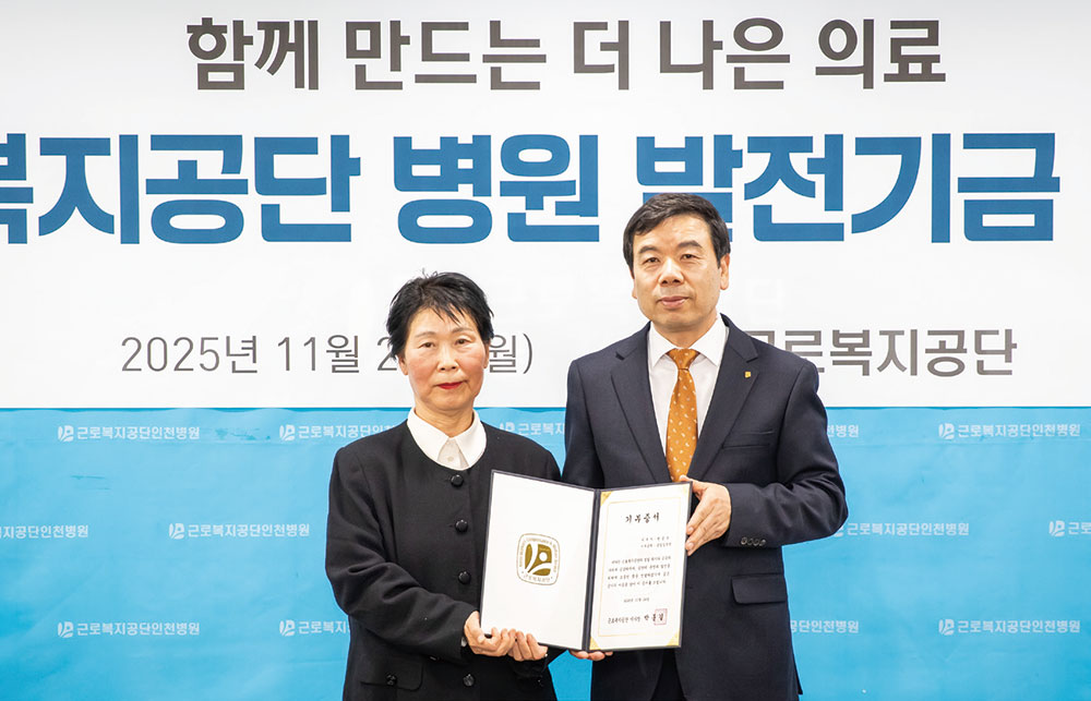 공단이 지난 11월 24일 인천병원에서 산업재해 유족으로부터 10억 원의 발전기금을 기부받아 전달식을 개최했다. 이날 행사에는 박종길 이사장과 기부자 천금옥 님을 비롯해 성헌규 의료복지이사, 오장근 의료사업본부장, 최문희 인천병원장 등 병원 내빈이 참석해 뜻깊은 마음을 빛냈다. 또한 산재환자로 투병의 시간을 보내다 영면한 고인의 뜻과 유가족의 마음을 기리는 감사패와 기부증서 전달식도 함께 진행됐다.
