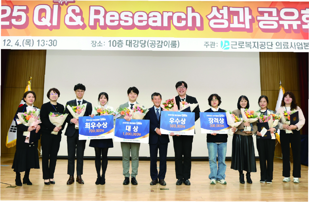 한편 오장근 의료사업본부장은 격려사를 통해 이번 성과공유에 함께한 모든 참여자를 격려하며 “QI는 단기적 성과를 내기 위한 이벤트가 아니라 의료기관의 생존 전략”이라며 “현장에서 축적된 작은 개선들이 모여 환자의 회복과 재활을 돕는 체계적 기반을 만든다”고 강조했다. 이어 “공단은 앞으로도 연구 기반을 강화하고 병원 간 지식 공유 체계를 확대해 산재환자가 가장 신뢰하는 공공의료기관으로 자리매김하겠다”고 밝혔다.