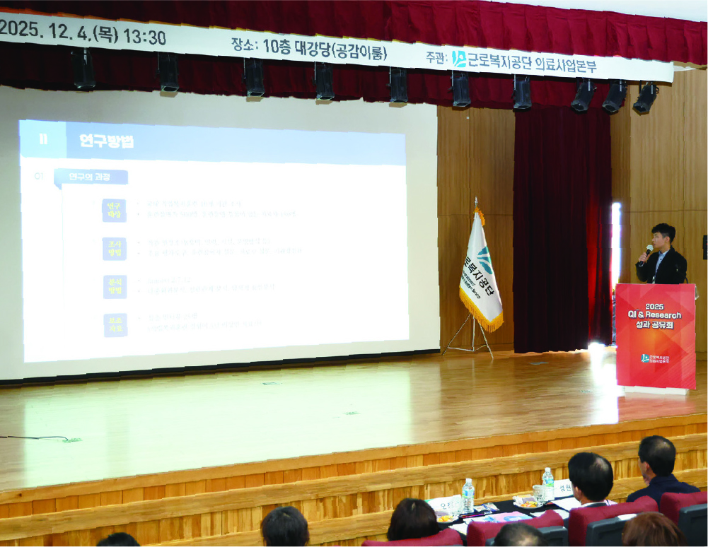 공단은 이러한 중요성을 인식해 매년 병원별 QI 활동을 종합적으로 점검하고 연구성과를 공유하는 발표회를 열어 현장의 개선 노력이 기관 전체의 혁신으로 확대될 수 있도록 돕고 있다. 올해 역시 병원별 연구와 개선 활동을 종합적으로 검토하는 자리가 마련돼 산재의료의 전문성과 신뢰도를 높이기 위한 구체적 방안이 제시됐다.