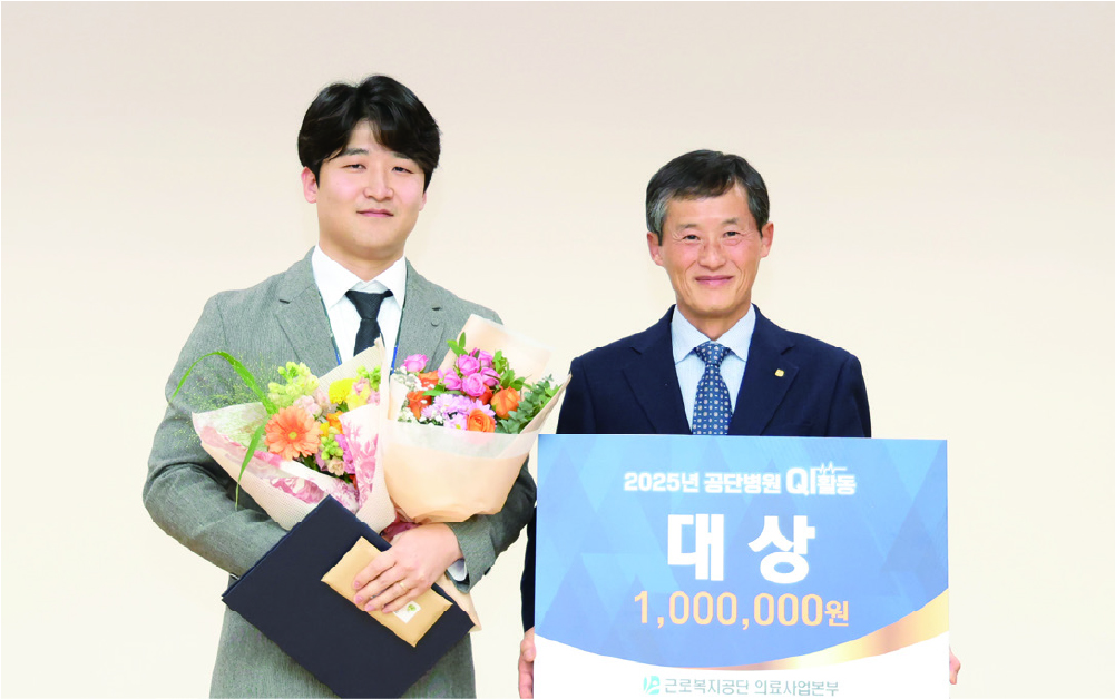 ___ 인천병원 김성호 대리지금도 현장에서 환자를 위해 힘쓰고 있는 모든 공단 병원 의료인들께 진심으로 감사와 격려의 마음을 전합니다. 외래 업무 표준화를 비롯한 여러 개선 활동을 통해 더 나은 병원을 만드는 데 앞으로도 최선을 다하겠습니다.